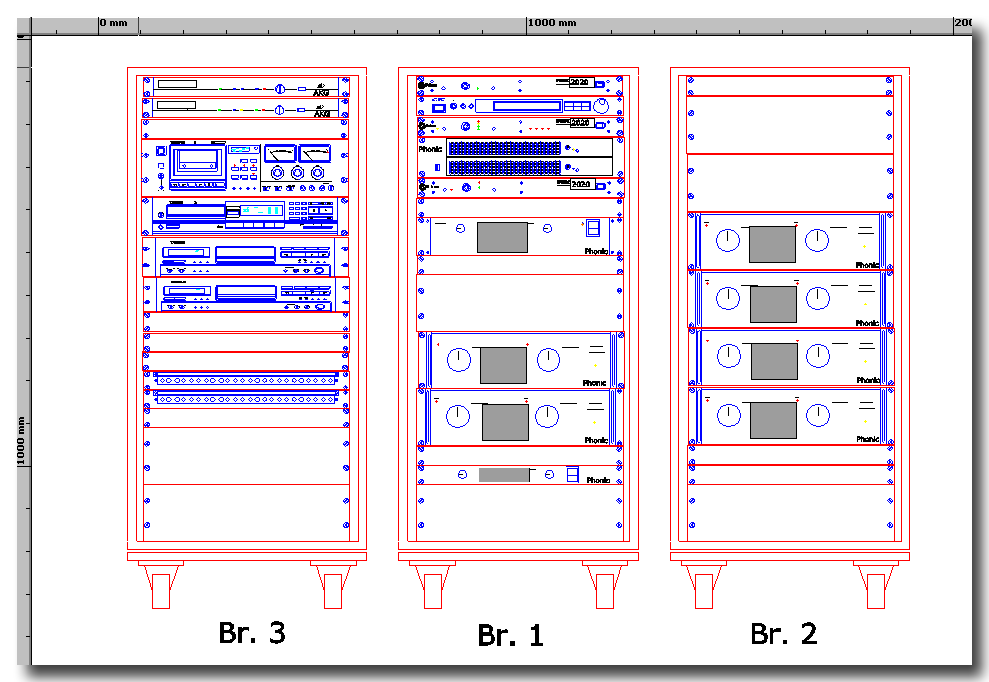 smješten mikser. Svi uređaji su u rackovima. Iza leđa operatera su dva racka visine 24HE sa uređajima koji se ne trebaju podešavati za vrijeme rada, a s prednje
