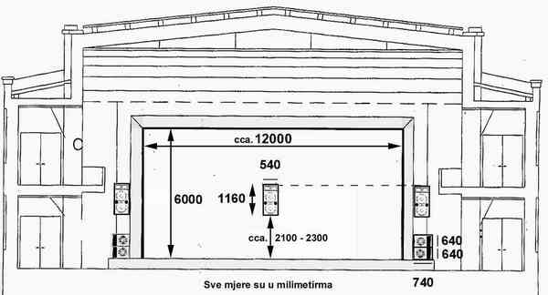 gledališta, a 16.1 x 12.1 x 12.2 u dijelu pozornice. Ispod zakošenog