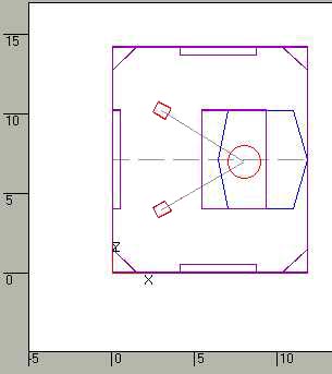Tamnija mjesta su visoke razine zvučnog tlaka idealna za postavu apsorbera koji će prigušiti koloracije nepovoljnog rasporeda modova. Također, tamna mjesta su područja koja treba izbjeći kako za postavu zvučnika, tako i za smještaj slušatelja. Analiziramo li sadašnji raspored u slušaonici, slušatelj je postavljen upravo n a mjestu nepovoljne sumacije modova, koje će strahovito snažno naglasiti područje oko 93 Hz. Pri tome treba posvetiti pozornost karakteristici apsorpcije ugrađenih apsorbera, koja treba imati maksimalnu vrijednost na frekvenciji moda koji uzrokuje koloraciju (vidi Akustika prostorija str. 69 -72).Dakle, u konačnom rasporedu zvučnika, očito je da će slušatelja trebati odmaknuti od zida. Točan raspored zvučnika izračunat će akustički program. Međutim, prethodno je potrebno akustički točno definirati primijenjene zvučnike po najvažnijim parametrima te postaviti relevantne parametre optimizacije. Optimizacija položaja zvučnika daje slijedeću situaciju u prostoriji: