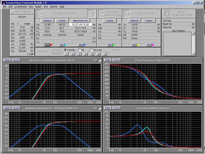 Odgovor: Za brzi bas, najbolji odziv postiže se dipolnom konstrukcijom zvučnika - što je sustav 1. reda, ali neprimjenjivo u automobilu. Sustav drugog reda koji ima nesto lošiji odziv (po pitanju brzine basa) je potpuno zatvorena - kompresiona kutija. Zvučnik kojeg imaš ne možeš koristiti u kompresionoj kutiji jer su njegovi parametri 100% za neku od verzija bas refleksa. Inače je to vrhunski zvučnik starije proizvodnje. Na slici je proračun sa zvučnikom u nekoliko verzija kutija tipa bas refleks koje bi došle u obzir u automobilu, ali sumnjam da će zadovoljiti s obzirom na tvoj ukus. Najbolji rezultat po pitanju donje granične frekvencije dobije se u BP kutiji (PLAVO), ali kao što vidiš, to je ujedno i "najsporiji" bas.